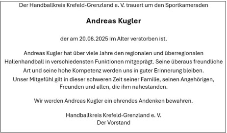 Am 20.01.2025 finden in der Josefshalle in Anrath der reguläre Kreistag des Handballkreises Krefeld-Grenzland um 19.00 Uhr statt. Die Einladung ist bereits erfolgt.